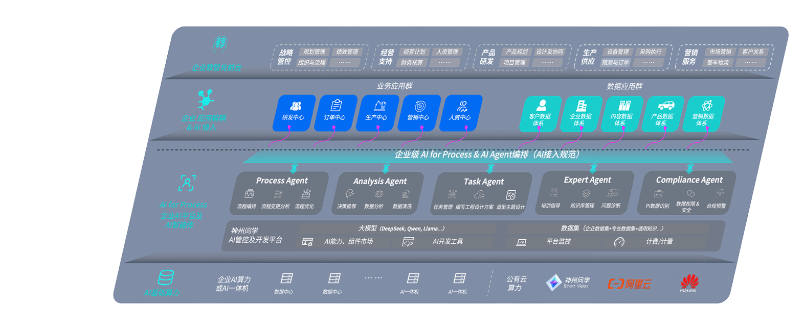 摩根娱乐问学智车解决方案是一套基于AI技术的汽车行业智能化系统,,覆盖从底层算力到顶层AI应用的全栈方案。。方案由算力层、、模型层和应用层组成:算力层,,,方案支持多种一体机配置,,,具备云端灵活部署、、多云适配以及动态优化计算资源的能力;模型层,,摩根娱乐问学平台版提供了企业级AI应用一站式构建与管理平台,,,,支持基于后训练强化技术的汽车企业专属模型的训练、、、、评测和运营;应用层,,,摩根娱乐问学DeepSeek版提供包括超级员工、、、、智能招采、、、智能营销、、、、智能客服、、、AI for BI等一系列解决方案,,可助力汽车行业实现数字化转型,,,让管理更智能、、、响应更敏捷。。